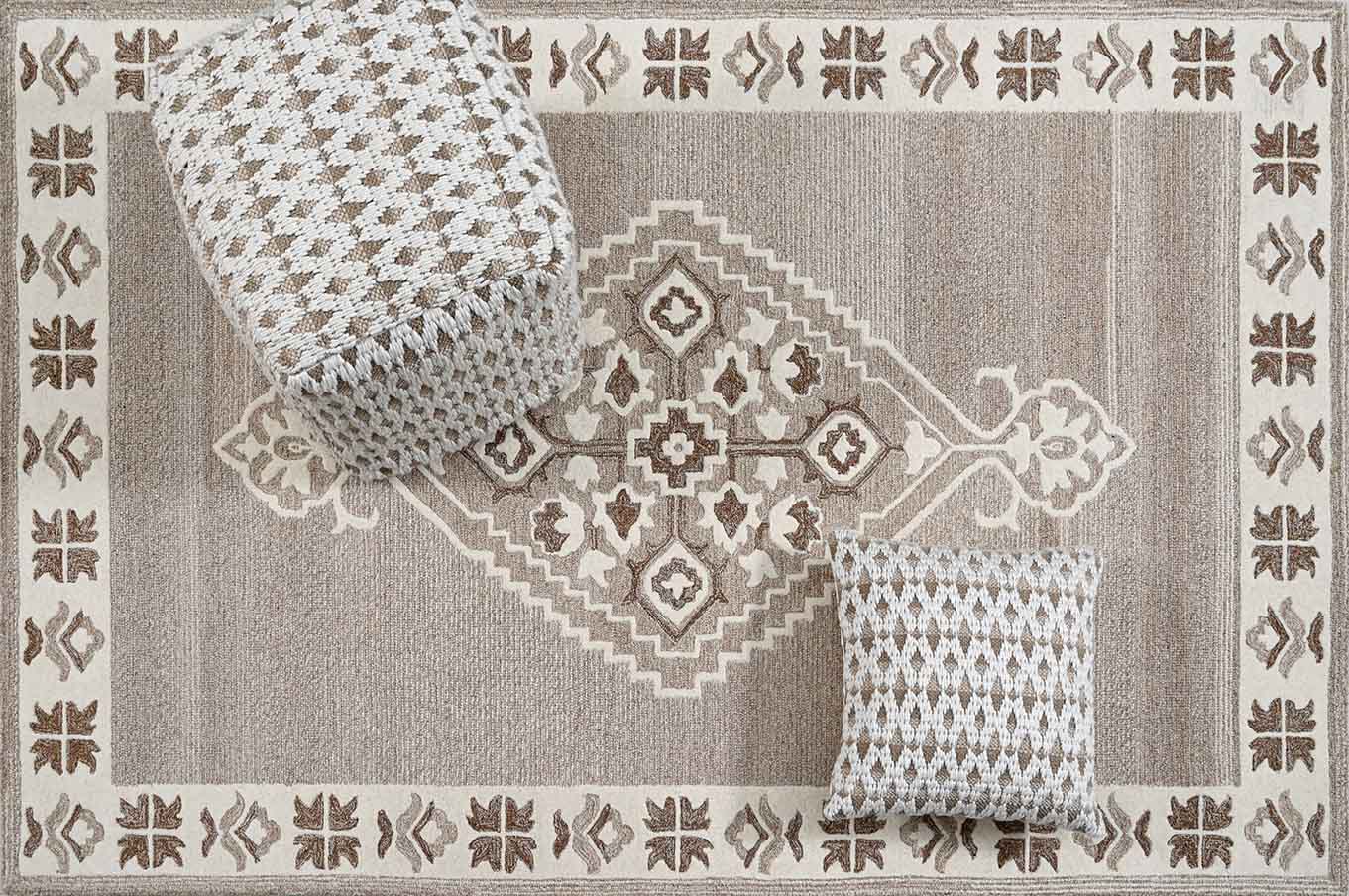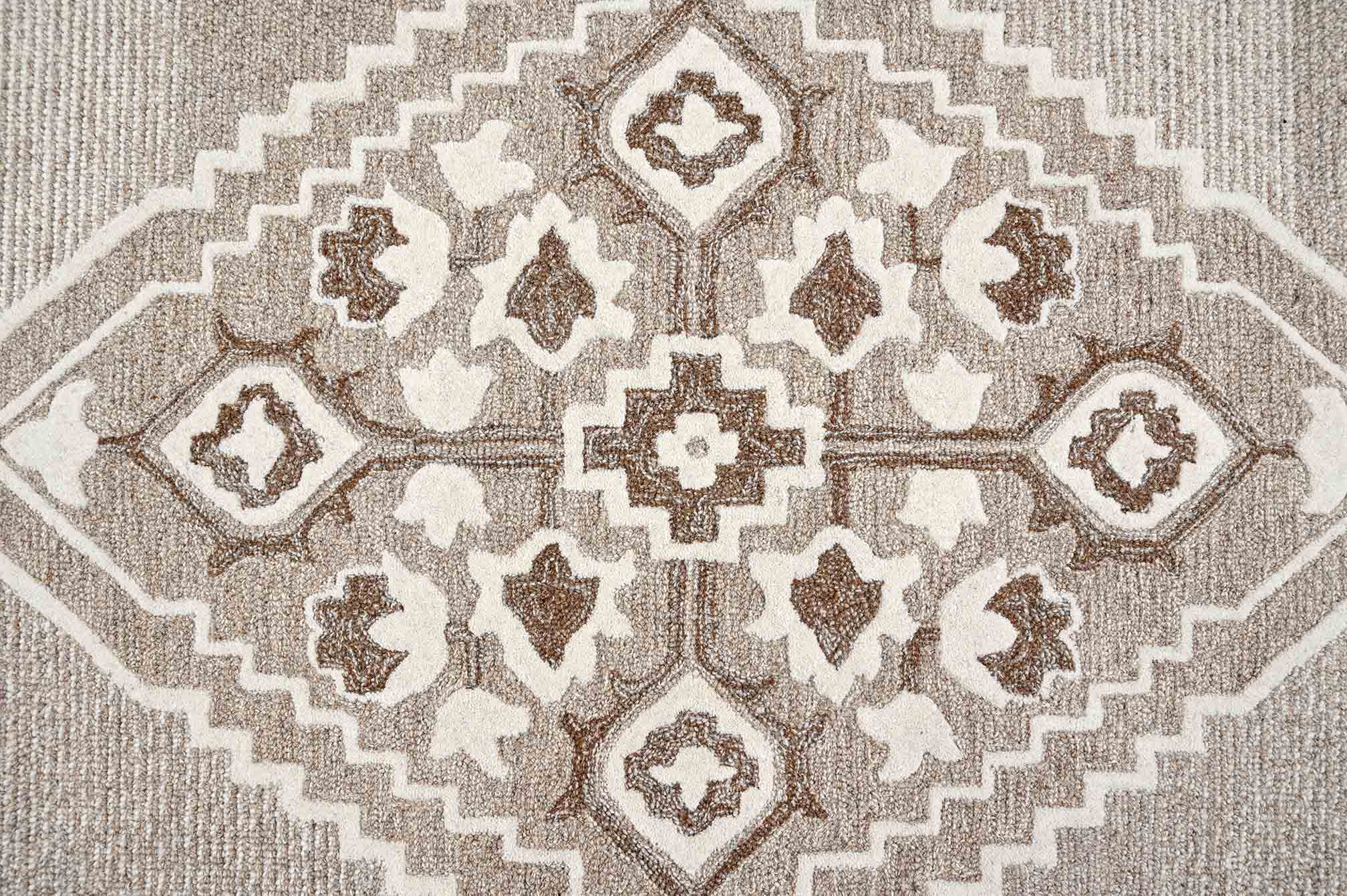 Introducing Elyasa - a subtle beige colored rug made of luxurious wool. Its shaped central medallion and traditional border add a touch of elegance to any room. Embrace the comfort and warmth of wool while elevating your home decor.