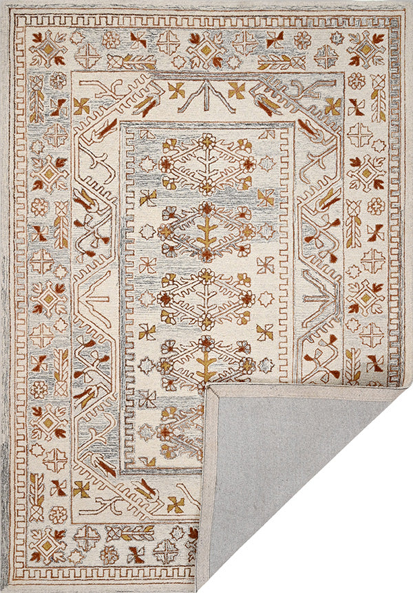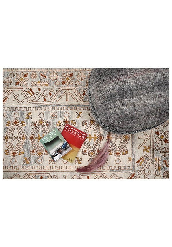 Elevate your space with Starlight, a hand-tufted rug crafted from luxurious wool. The textured Persian design in light ivory and yellow adds a touch of elegance and warmth. Its 5*8 size is perfect for any room. Experience quality and style at an affordable price of 26500.